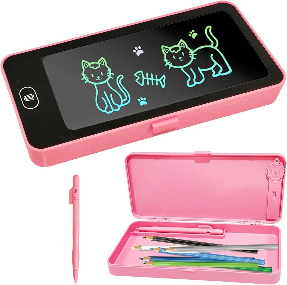🎊Make study time fun and screen-free with this innovative LCD Drawing Pen Case – a smart compass box that doubles as a digital writing pad! Whether it’s solving quick math problems, doodling butterflies, or writing reminders, your child can do it all right on the case.