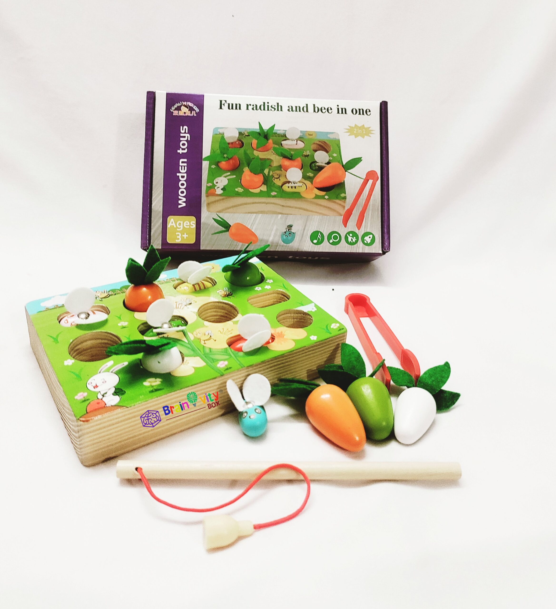 and love for learning with the Carrot & Bee Harvest Wooden Game.m