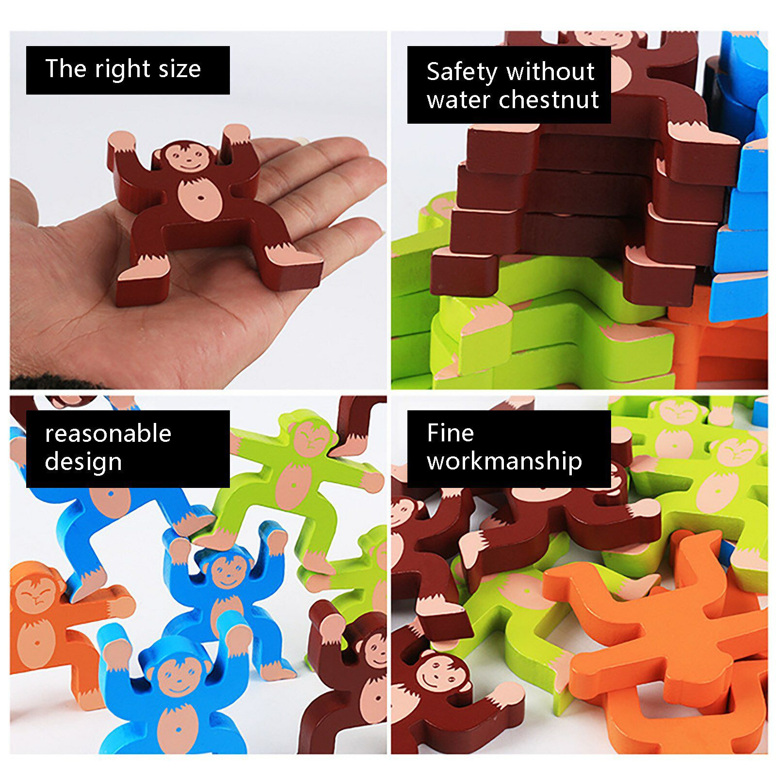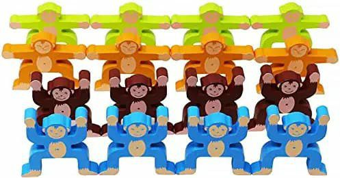 👉classic stacking toys include 16 pieces colorful Smiling monkeys, interlock each other hand in hands, stacking them while keep them in balance, will be challenging and increase more fun and happy.